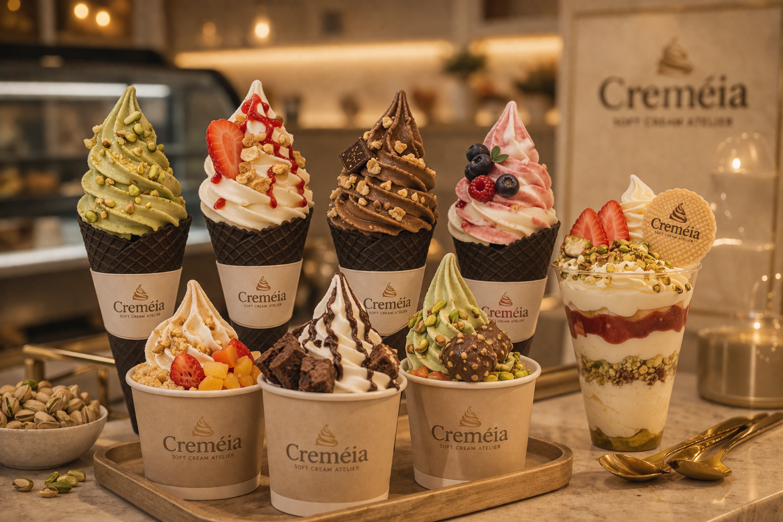 Creméia, hayatın kalbinde doğan bir soft cream atölyesidir. Her kase ve külahta sanatı ve konforu harmanlıyoruz.